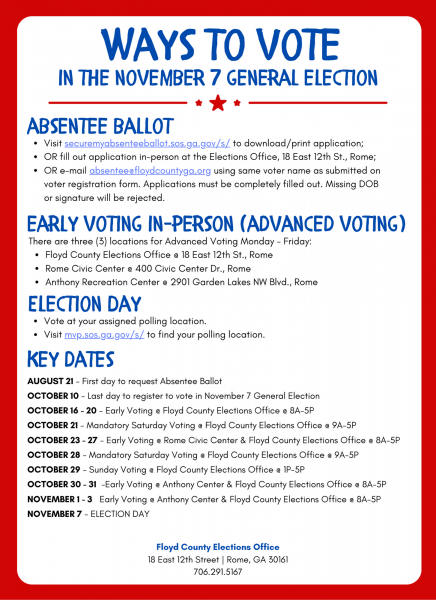 OCTOBER 23 - 27 - Early Voting @ Rome Civic Center & Floyd County Elections Office @ 8A-5P