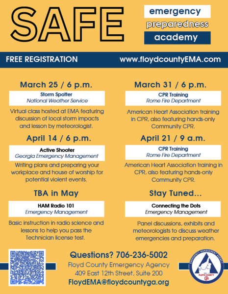 Preparation is key to overcoming obstacles of disaster and emergency, and Floyd County Emergency Management is excited about a curriculum that empowers our community with both skills and experience. REGISTER TODAY